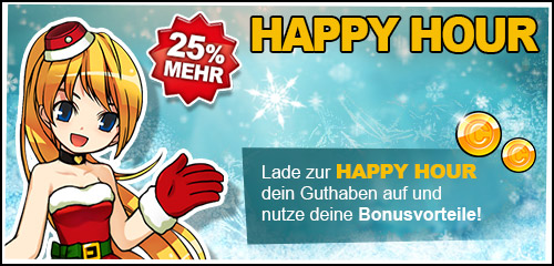 Am 25.12.2025 00:00 CET wartet die nächste Happy Hour auf euch! Ganze 24 Stunden lang (25.12 23:59 CET) gibt es einen Bonus von 25% auf El-Coins. Worauf wartet ihr noch? Nutzt die Chance und stürzt euch frisch ausgerüstet in weitere spannende Abenteuer auf Elios!